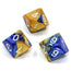 Gemini Polyhedral Blue-Gold/white d10 ~ Multiple loose dice are pictured to show all sides and possible color variations. Item Code is for individual dice.