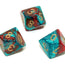 Gemini Polyhedral Red-Teal/gold d10 ~ Multiple loose dice are pictured to show all sides and possible color variations. Item Code is for individual dice.