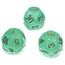 Borealis Polyhedral Light Green/gold Luminary d12 ~ Multiple loose dice are pictured to show all sides and possible color variations. Item Code is for individual dice.