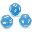 Frosted Polyhedral Caribbean Blue/white d12 ~ Multiple loose dice are pictured to show all sides and possible color variations. Item Code is for individual dice.