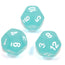 Frosted Polyhedral Teal/white d12 ~ Multiple loose dice are pictured to show all sides and possible color variations. Item Code is for individual dice.