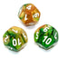 Gemini Polyhedral Gold-Green/white d12 ~ Multiple loose dice are pictured to show all sides and possible color variations. Item Code is for individual dice.