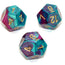 Gemini Polyhedral Purple-Teal/gold d12 ~ Multiple loose dice are pictured to show all sides and possible color variations. Item Code is for individual dice.