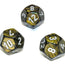 Leaf Polyhedral Black Gold/silver d12 ~ Multiple loose dice are pictured to show all sides and possible color variations. Item Code is for individual dice.