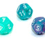 Nebula Polyhedral Wisteria/white Luminary d12 ~ Multiple loose dice are pictured to show all sides and possible color variations. Item Code is for individual dice.