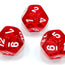 Translucent Polyhedral Red/white d12 ~ Multiple loose dice are pictured to show all sides and possible color variations. Item Code is for individual dice.