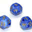 Vortex Polyhedral Blue/gold d12 ~ Multiple loose dice are pictured to show all sides and possible color variations. Item Code is for individual dice.