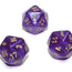 Borealis Polyhedral Royal Purple/gold Luminary d20 ~ Multiple loose dice are pictured to show all sides and possible color variations. Item Code is for individual dice.