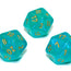 Borealis Polyhedral Teal/gold Luminary d20 ~ Multiple loose dice are pictured to show all sides and possible color variations. Item Code is for individual dice.
