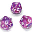 Festive Polyhedral Violet/white d20 ~ Multiple loose dice are pictured to show all sides and possible color variations. Item Code is for individual dice.