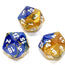 Gemini Polyhedral Blue-Gold/white d20 ~ Multiple loose dice are pictured to show all sides and possible color variations. Item Code is for individual dice.
