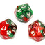 Gemini Polyhedral Green-Red/white d20 ~ Multiple loose dice are pictured to show all sides and possible color variations. Item Code is for individual dice.