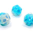 Gemini Polyhedral Pearl Turquoise-White/blue Luminary d20 ~ Multiple loose dice are pictured to show all sides and possible color variations. Item Code is for individual dice.