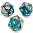 Gemini Polyhedral Steel-Teal/white d20 ~ Multiple loose dice are pictured to show all sides and possible color variations. Item Code is for individual dice.
