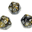 Leaf Polyhedral Black Gold/silver d20 ~ Multiple loose dice are pictured to show all sides and possible color variations. Item Code is for individual dice.