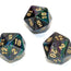 Lustrous Polyhedral Shadow/gold d20 ~ Multiple loose dice are pictured to show all sides and possible color variations. Item Code is for individual dice.