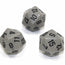 Opaque Polyhedral Dark Grey/black d20 ~ Multiple loose dice are pictured to show all sides and possible color variations. Item Code is for individual dice.