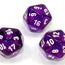 Translucent Polyhedral Purple/white d20 ~ Multiple loose dice are pictured to show all sides and possible color variations. Item Code is for individual dice.