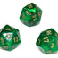 Vortex Polyhedral Green/gold d20 ~ Multiple loose dice are pictured to show all sides and possible color variations. Item Code is for individual dice.