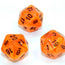 Vortex Polyhedral Orange/black d20 ~ Multiple loose dice are pictured to show all sides and possible color variations. Item Code is for individual dice.