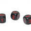 Opaque 16mm d3 (d6 w/ 1-2-3 twice) Black/red ~ Multiple loose dice are pictured to show all sides and possible color variations. Item Code is for individual dice.