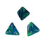 Festive Polyhedral Green/silver d4 ~ Multiple loose dice are pictured to show all sides and possible color variations. Item Code is for individual dice.