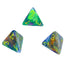 Festive Polyhedral Rio/yellow d4 ~ Multiple loose dice are pictured to show all sides and possible color variations. Item Code is for individual dice.
