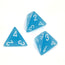 Frosted Polyhedral Caribbean Blue/white d4 ~ Multiple loose dice are pictured to show all sides and possible color variations. Item Code is for individual dice.
