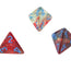 Nebula Polyhedral Primary/blue Luminary d4 ~ Multiple loose dice are pictured to show all sides and possible color variations. Item Code is for individual dice.