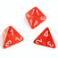 Translucent Polyhedral Orange/white d4 ~ Multiple loose dice are pictured to show all sides and possible color variations. Item Code is for individual dice.