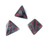 Velvet Polyhedral Black/red d4 ~ Multiple loose dice are pictured to show all sides and possible color variations. Item Code is for individual dice.