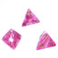 Vortex Polyhedral Pink/gold d4 ~ Multiple loose dice are pictured to show all sides and possible color variations. Item Code is for individual dice.