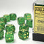 Chessex D6 Borealis 16mm d6 Maple Green/yellow Dice Block (12 dice)