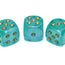 Borealis 16mm w/pips Teal/gold Luminary d6 ~ Multiple loose dice are pictured to show all sides and possible color variations. Item Code is for individual dice.