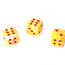 Festive 12mm w/pips Sunburst/red d6 ~ Multiple loose dice are pictured to show all sides and possible color variations. Item Code is for individual dice.