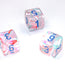 Festive Polyhedral Pop Art/blue d6 ~ Multiple loose dice are pictured to show all sides and possible color variations. Item Code is for individual dice.