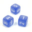 Frosted Polyhedral Blue/white d6 ~ Multiple loose dice are pictured to show all sides and possible color variations. Item Code is for individual dice.