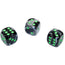Gemini 12mm w/pips Black-Grey/green d6 ~ Multiple loose dice are pictured to show all sides and possible color variations. Item Code is for individual dice.