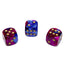 Gemini 12mm w/pips Blue-Purple/gold d6 ~ Multiple loose dice are pictured to show all sides and possible color variations. Item Code is for individual dice.