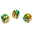 Gemini 12mm w/pips Gold-Green/white d6 ~ Multiple loose dice are pictured to show all sides and possible color variations. Item Code is for individual dice.