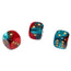 Gemini 12mm w/pips Red-Teal/gold d6 ~ Multiple loose dice are pictured to show all sides and possible color variations. Item Code is for individual dice.
