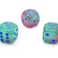 Chessex D6 Dice Gemini 16mm w/pips Gel Green-Pink/blue Luminary d6