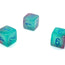 Gemini Polyhedral Gel Green-Pink/blue Luminary d6 ~ Multiple loose dice are pictured to show all sides and possible color variations. Item Code is for individual dice.