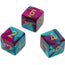 Gemini Polyhedral Purple-Teal/gold d6 w/#s ~ Multiple loose dice are pictured to show all sides and possible color variations. Item Code is for individual dice.