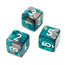 Gemini Polyhedral Steel-Teal/white d6 w/#'s ~ Multiple loose dice are pictured to show all sides and possible color variations. Item Code is for individual dice.