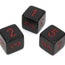 Opaque Polyhedral Black/red d6 w/#s ~ Multiple loose dice are pictured to show all sides and possible color variations. Item Code is for individual dice.