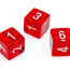 Translucent Polyhedral Red/white d6 ~ Multiple loose dice are pictured to show all sides and possible color variations. Item Code is for individual dice.