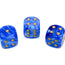 Vortex 16mm w/pips Blue/gold d6 ~ Multiple loose dice are pictured to show all sides and possible color variations. Item Code is for individual dice.
