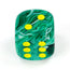 Vortex 20mm w/pips Malachite Green/yellow d6 ~ Multiple loose dice are pictured to show all sides and possible color variations. Item Code is for individual dice.