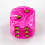 Vortex 20mm w/pips Pink/gold d6 ~ Multiple loose dice are pictured to show all sides and possible color variations. Item Code is for individual dice.